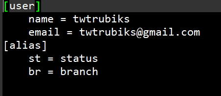 他是一個 隱藏文件.gitconfig ,打開他的話格式如下。