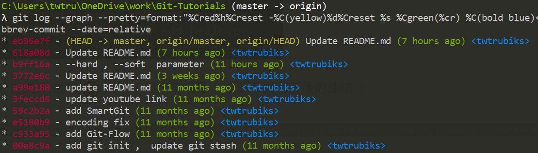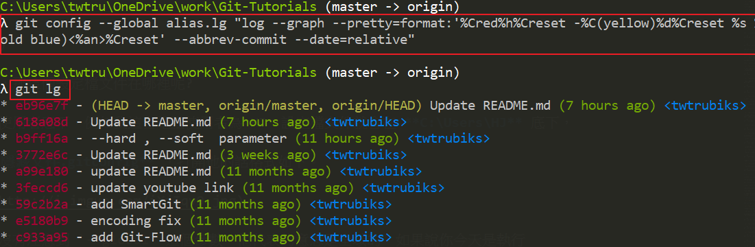 將前面這一大串變成一個別名,這樣以後只需要執行 git lg