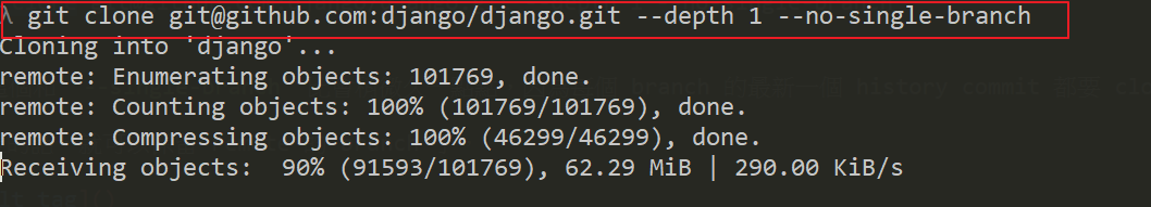git clone [email protected]:django/django.git --depth 1 --no-single-branch