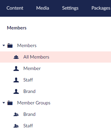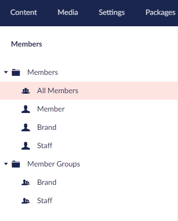 Custom member types "Brand" and "Staff" created on local environment and looks like this in members section:
