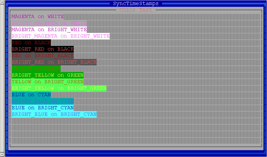 BOLDattribute orAIXTermcontrol sequences (terminal-dependent). Bright background is implemented using eitherBLINKattribute (RXVT family) orAIXTermcontrol sequences (terminal-dependent). - Pseudographics via either Unicode line drawing characters (if locale's codepage supports it -- i. e. for