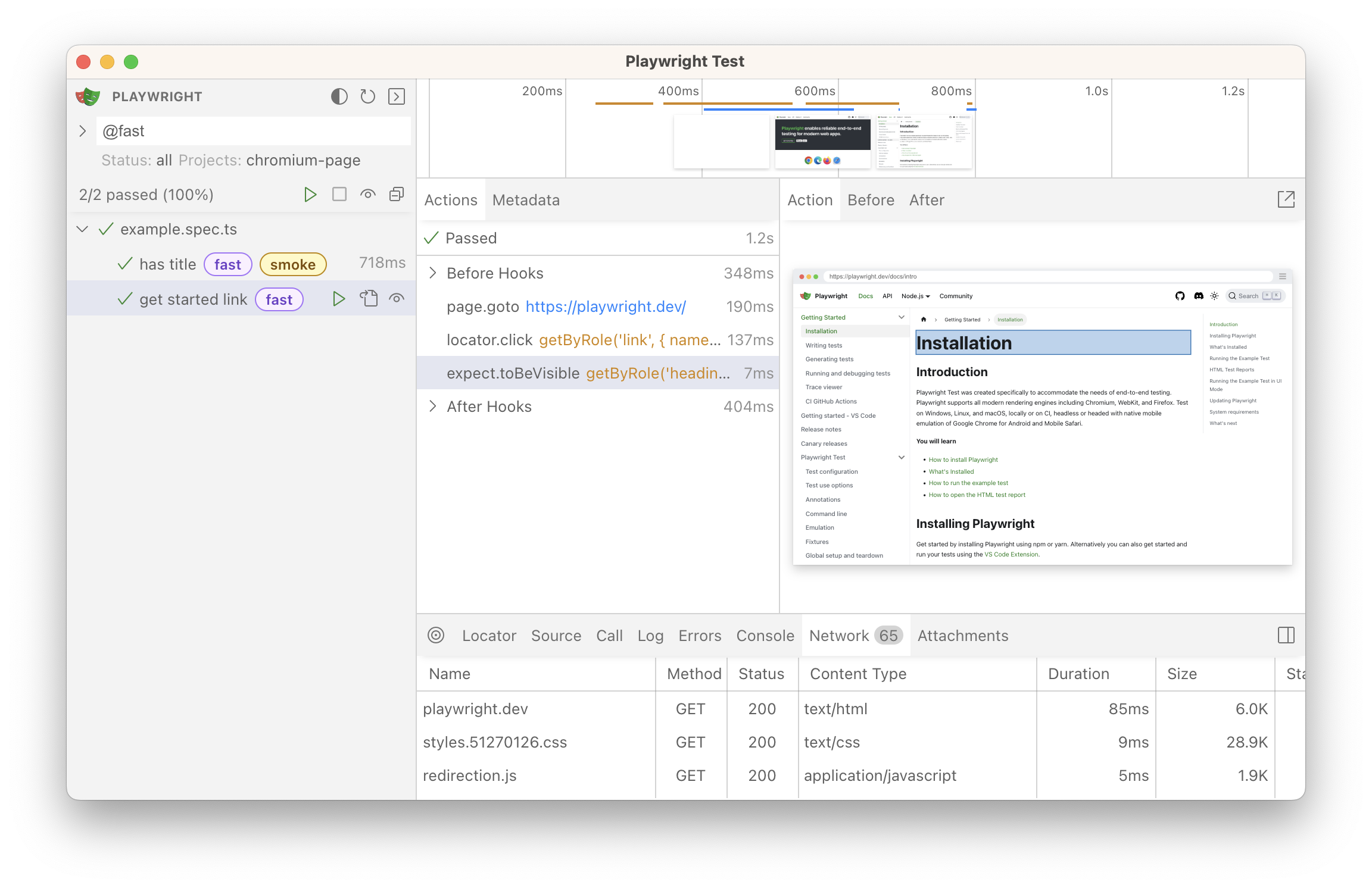 for testOptions.trace. In this mode, trace is recorded for the first run of each test, but not for retires. When test run fails, the trace file is retained, otherwise it is removed.New property testInfo.tags exposes test tags during test execution.